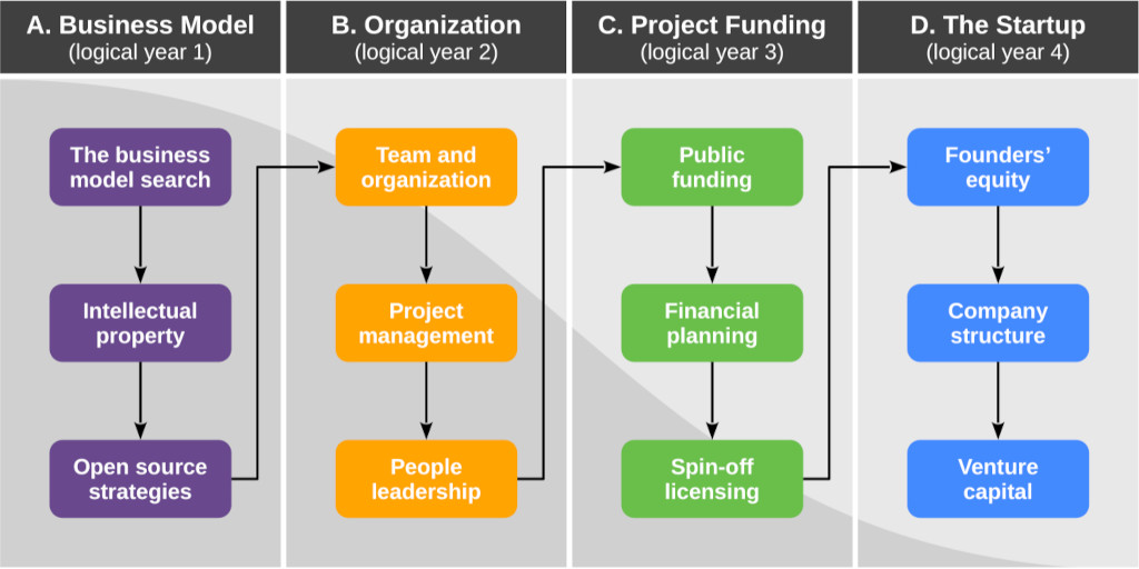 The research-to-startup (R2S) workshop program for wissenschaftliche Mitarbeiter:innen (Ph.D. students) teaches graduate students how to turn their research into a startup. It covers all entrepreneurship fundamentals using 12 half-day workshops, giving graduate education and technology transfer offices the freedom to focus their resources on the strengths and opportunities of their organization.